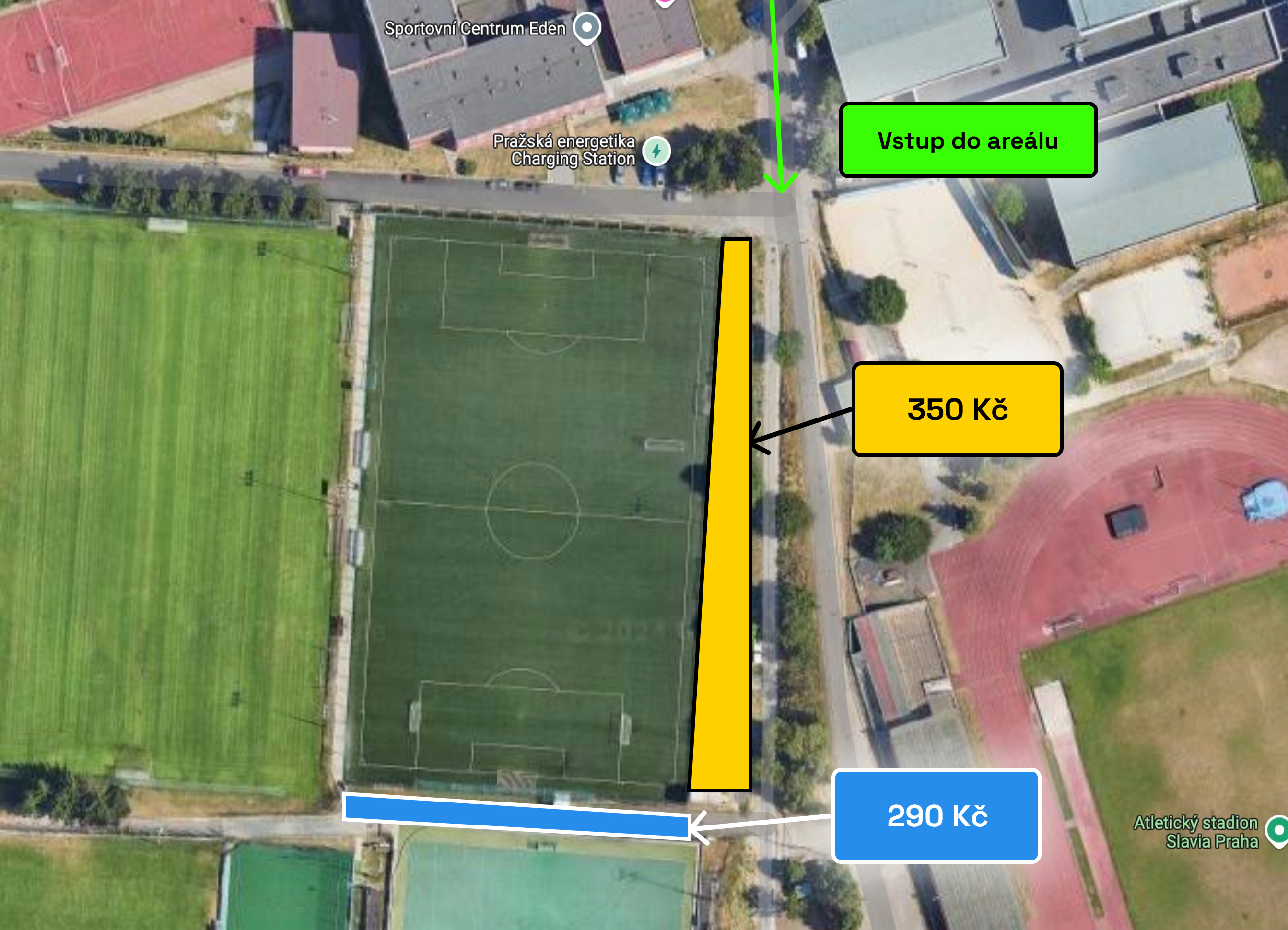 Cena vstupenky činí 350 Kč a pro fanoušky Sparty bude otevřen sektor za bránou u atletického stadionu za snížené vstupné 290 Kč, viz plánek níže.